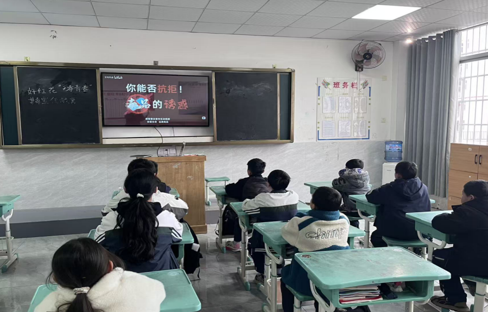 各班级围绕“健康人生·绿色无毒”主题,开展禁毒主题班会。通过PPT展示、短视频播放、案例剖析等形式,向学生讲解传统毒品与新型毒品(含伪装毒品)的种类、外观特征及危害,重点针对初中生特点,介绍“奶茶粉”“跳跳糖”等伪装毒品的识别方法。结合《禁毒法》《刑法》相关规定,明确涉毒行为的法律责任,通过真实案例还原,让学生认清毒品对个人、家庭、社会的严重危害,强化法律意识。同时,组织学生学习《麻醉药品和精神药品管理条例》,引导学生正确认识麻精药品,拒绝滥用,不触碰法律红线。